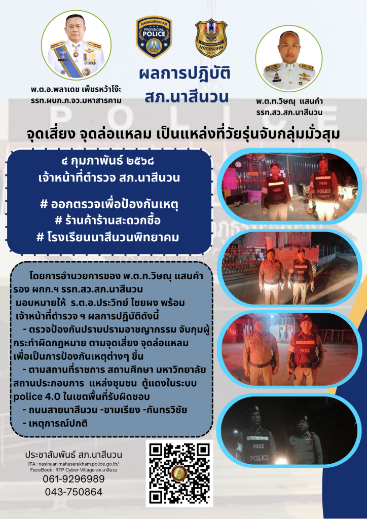 โดยการอำนวยการของ พ.ต.ท.วิษณุ แสนคำ รอง ผกก.ฯ รรท.สว.สภ.นาสีนวน
