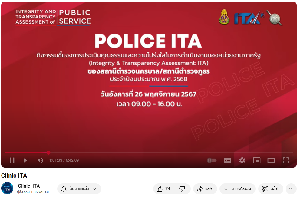 กิจกรรมชี้แจงการประเมินคุณธรรมและความโปร่งใสในการดำเนินงานของหน่วยงานภาครัฐ (Integrity & Transparency Assessment : ITA) ของสถานีตำรวจนครบาล/สถานีตำรวจภูธร ประจำปีงบประมาณ พ.ศ. 2568