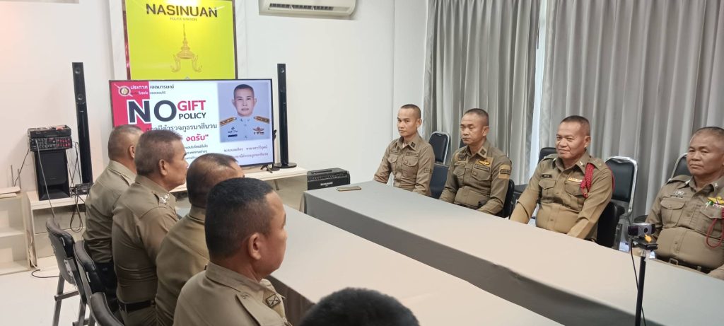 ข่าวกิจกรรมที่ 1 No Gift Policy 21 พฤศจิกายน 2566 โดย Admin / ข่าวภารกิจผู้บังคับบัญชา วันที่ ๒๑ พฤศจิกายน ๒๕๖๖ เวลา ๐๙.๐๐ น. พ.ต.ท.สมจิตร ชาลาเชาว์วิรุฬน์ สว.สภ.นาสีนวน ประชุมชี้แจง งานสอบสวน งานสืบสวน งานป้องกันปราบปราม งานจราจร อบรม กำชับ การปฏิบัติงานของ เจ้าหน้าที่ตำรวจให้ปฏิบัติตามกฎหมาย อย่าง เคร่งครัด ไม่ให้เรียกรับ ทรัพย์สินหรือประโยชน์อื่น ใด เพื่อช่วยเหลือผู้กระทำผิดทุกกรณี FacebookFacebookXXLINELine
